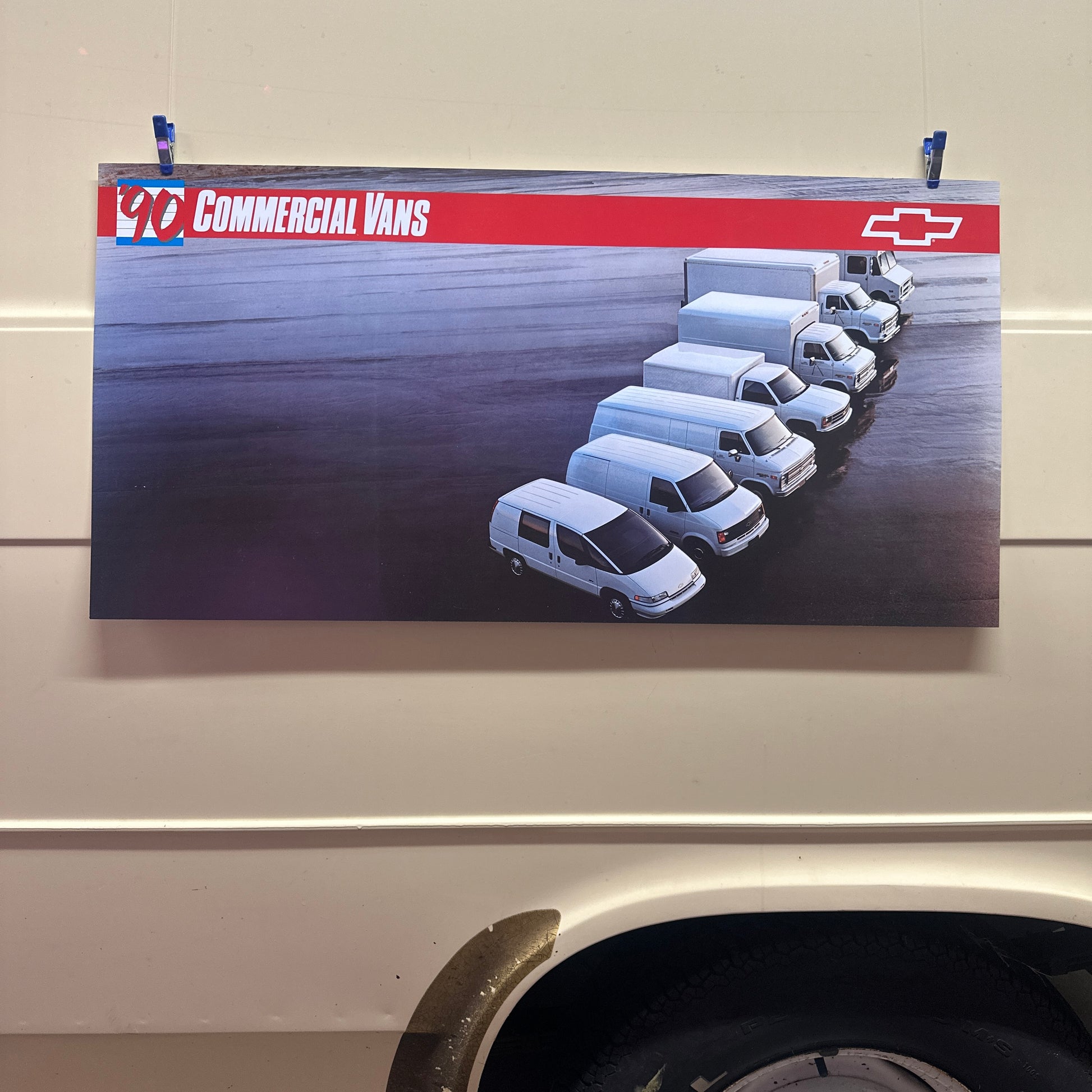 Straight from the Chevy Dealers wall to yours! These are original prints that hung in Dealership showrooms to show off the newest models of GM vans and trucks. I hang these all over my own shop, and I gotta say, they’re some of the coolest images out there.