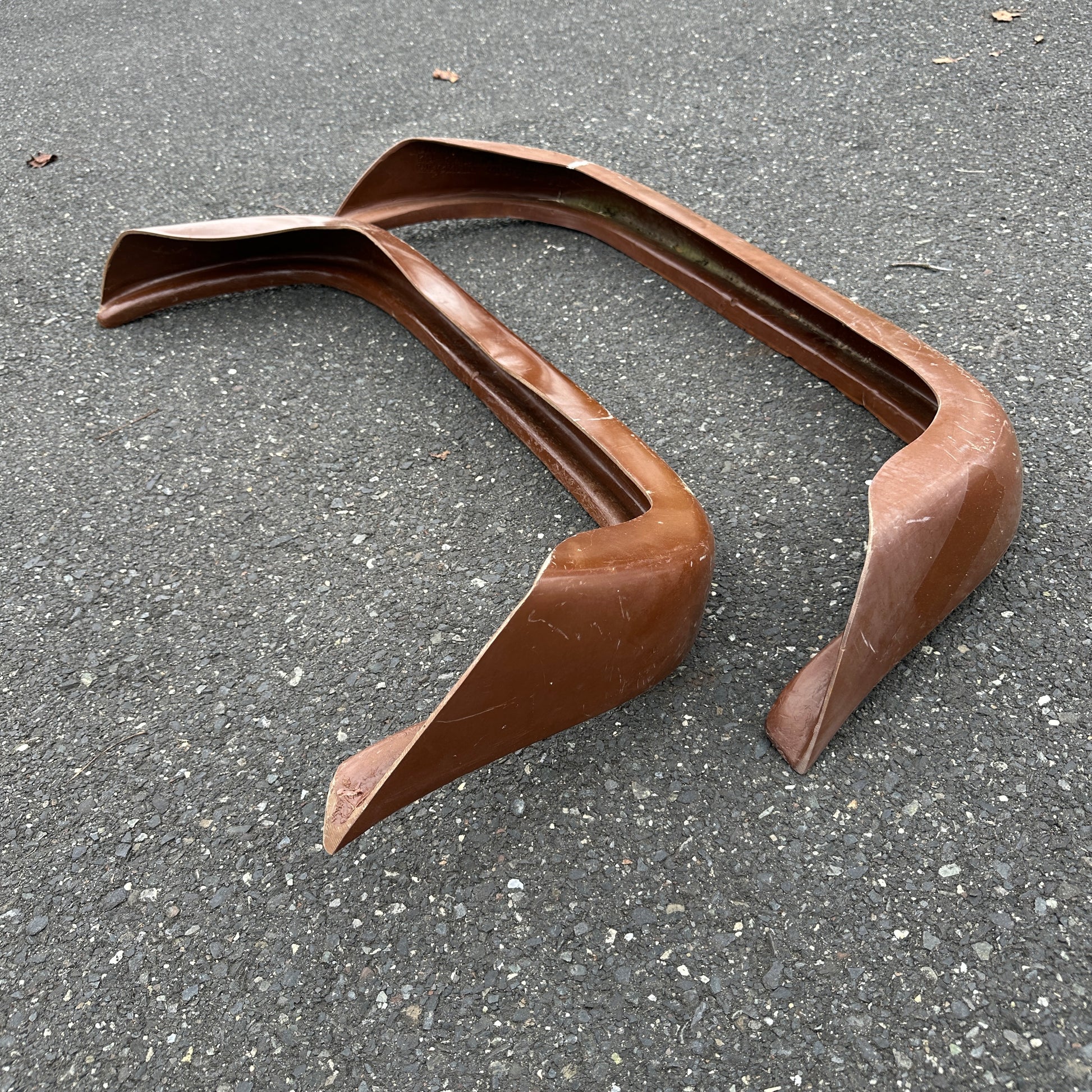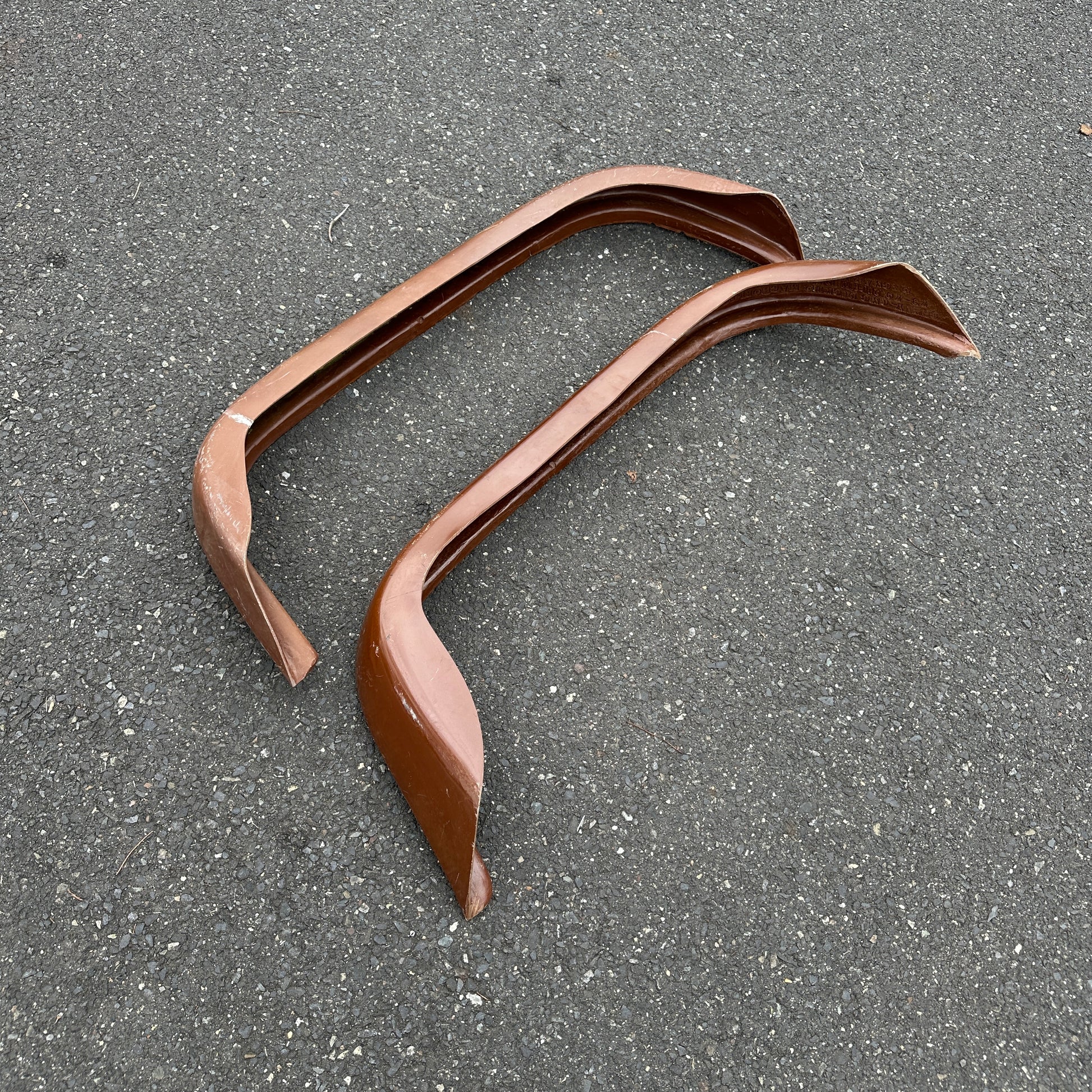 These urethane parts were kept in barn storage for 40+ years. They do not show signs of being mounted on a vehicle (unless otherwise noted) but do show marks, chips, scratches, warping, and dirt from years in unprotected storage. Please see all photos to verify condition before purchasing.