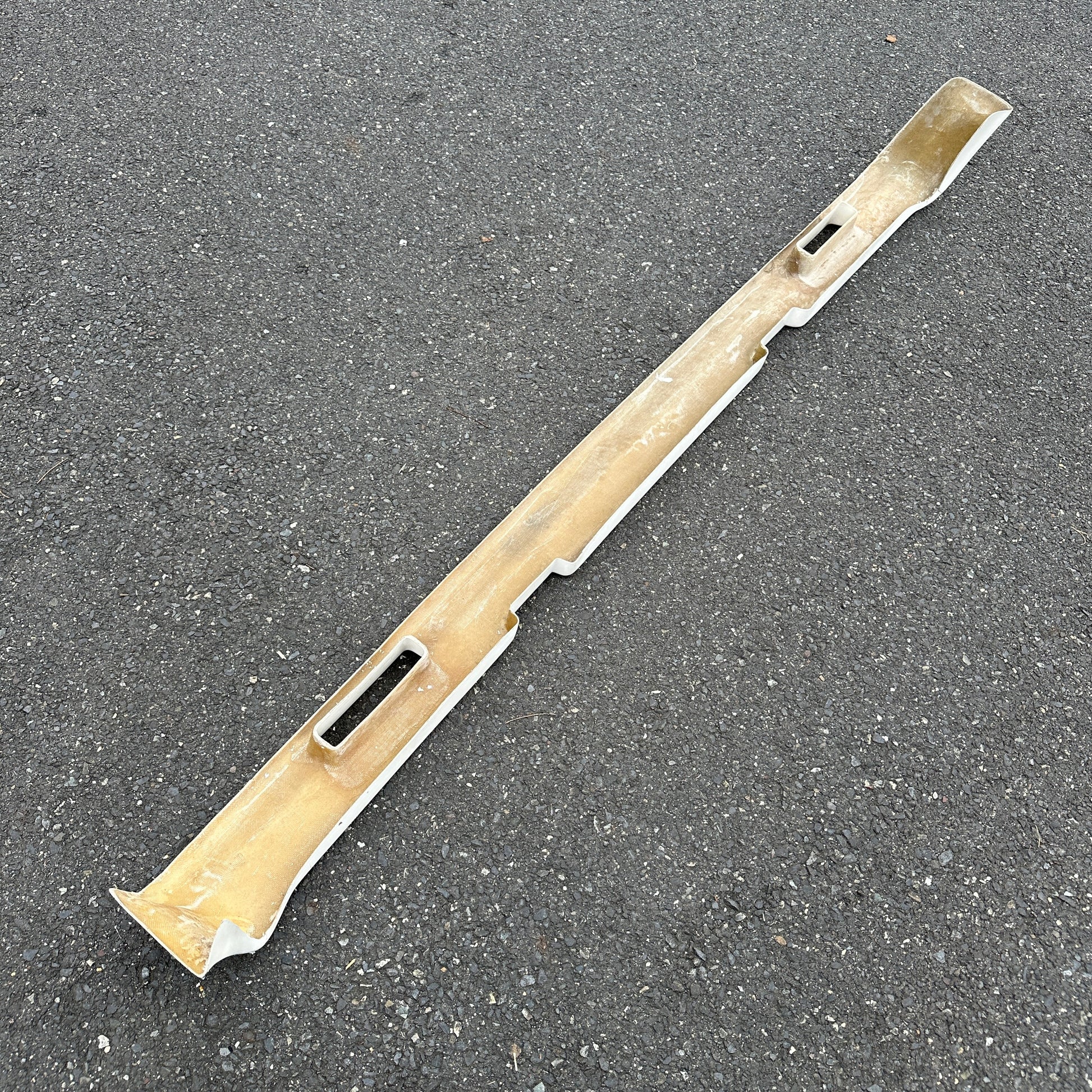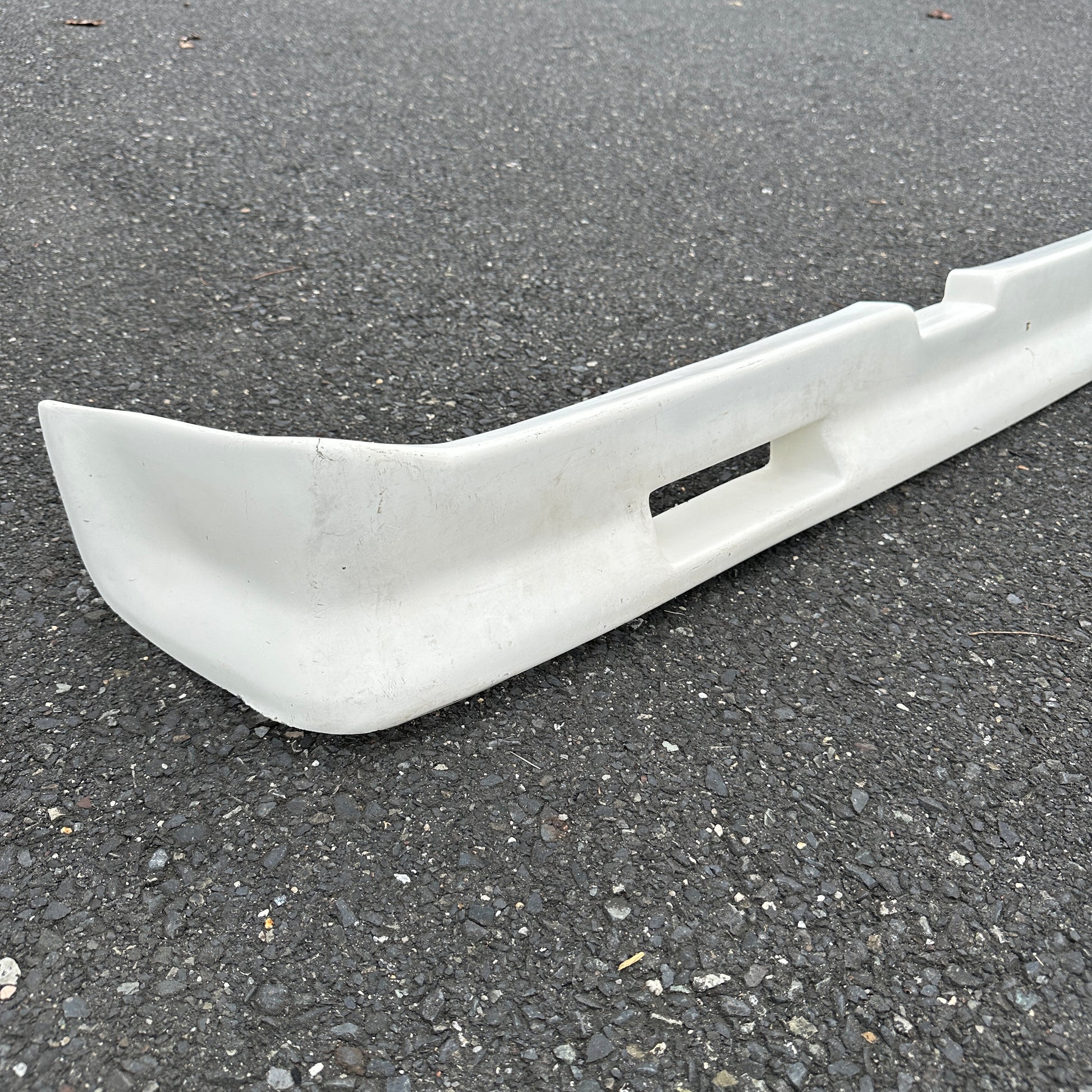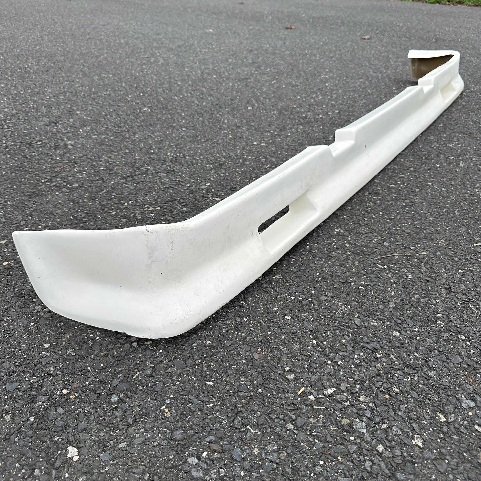 “New” from a distributors lot that was moved to barn storage for the past ~30 years. This squarebody lower spoiler shows minor wear and tear from storage, but has never been mounted or seen time on the road. It does show minor discoloration, chips, scratches, etc. Please see all photos for condition. There are small cracks at the top of each corner of the spoiler (in photos) that should not be seen when mounted.