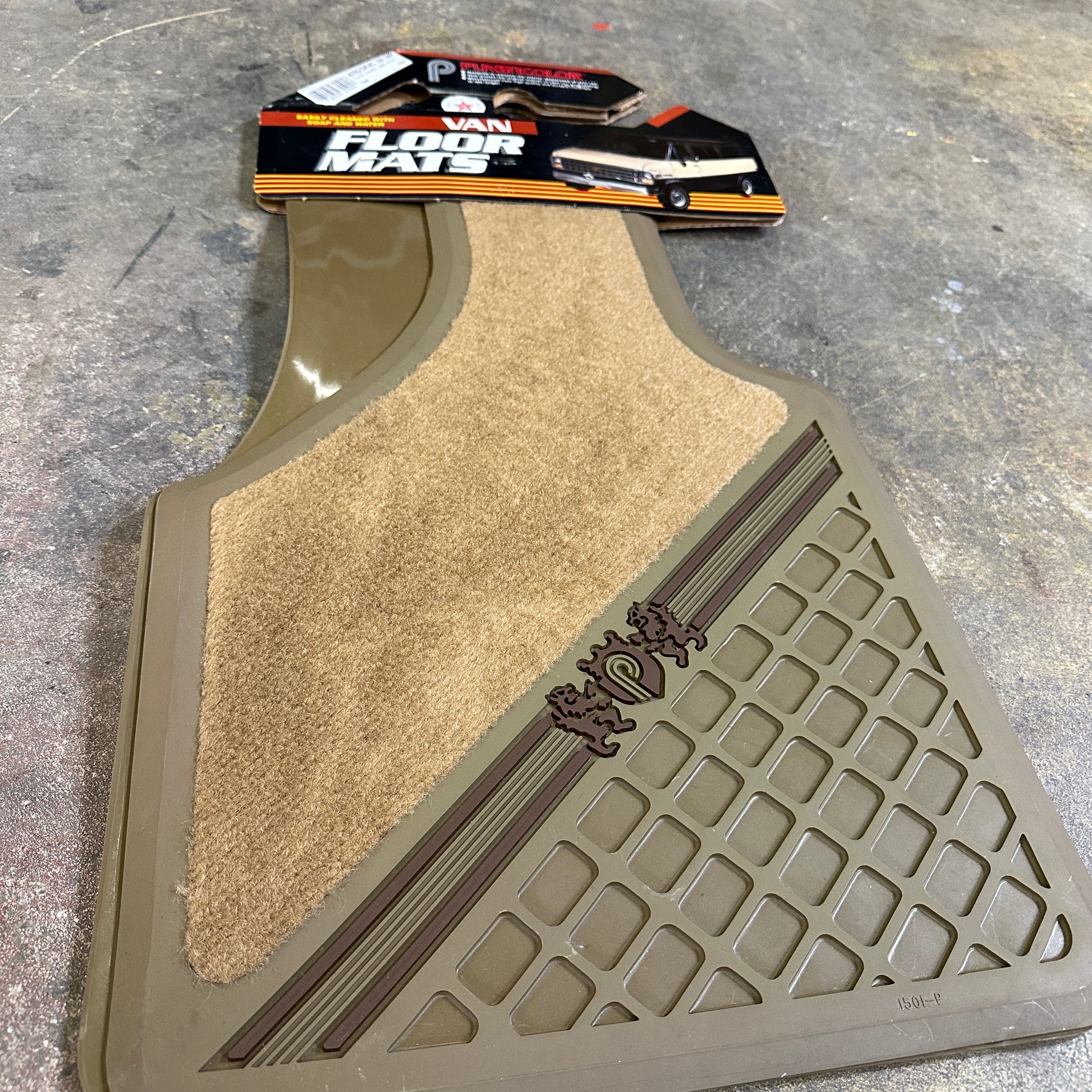 Deadstock Plasticolor Van Floor Mats, heavy rubber backing with carpet inserts. classic. Molded-in rubber logo. Fits Astro/Safari Van 1984+