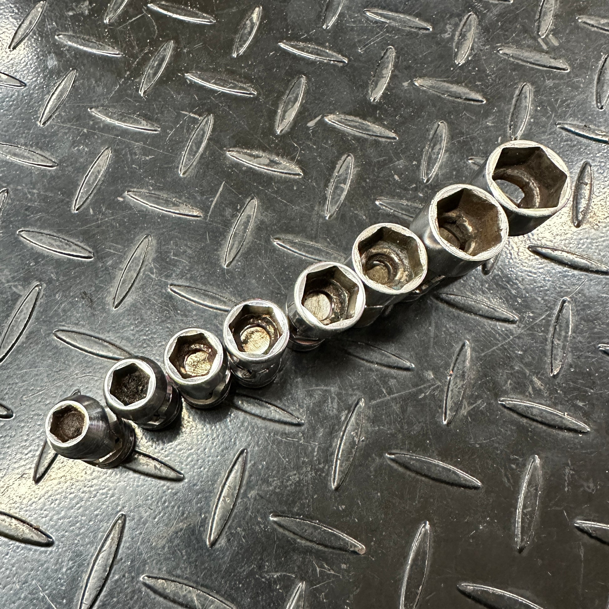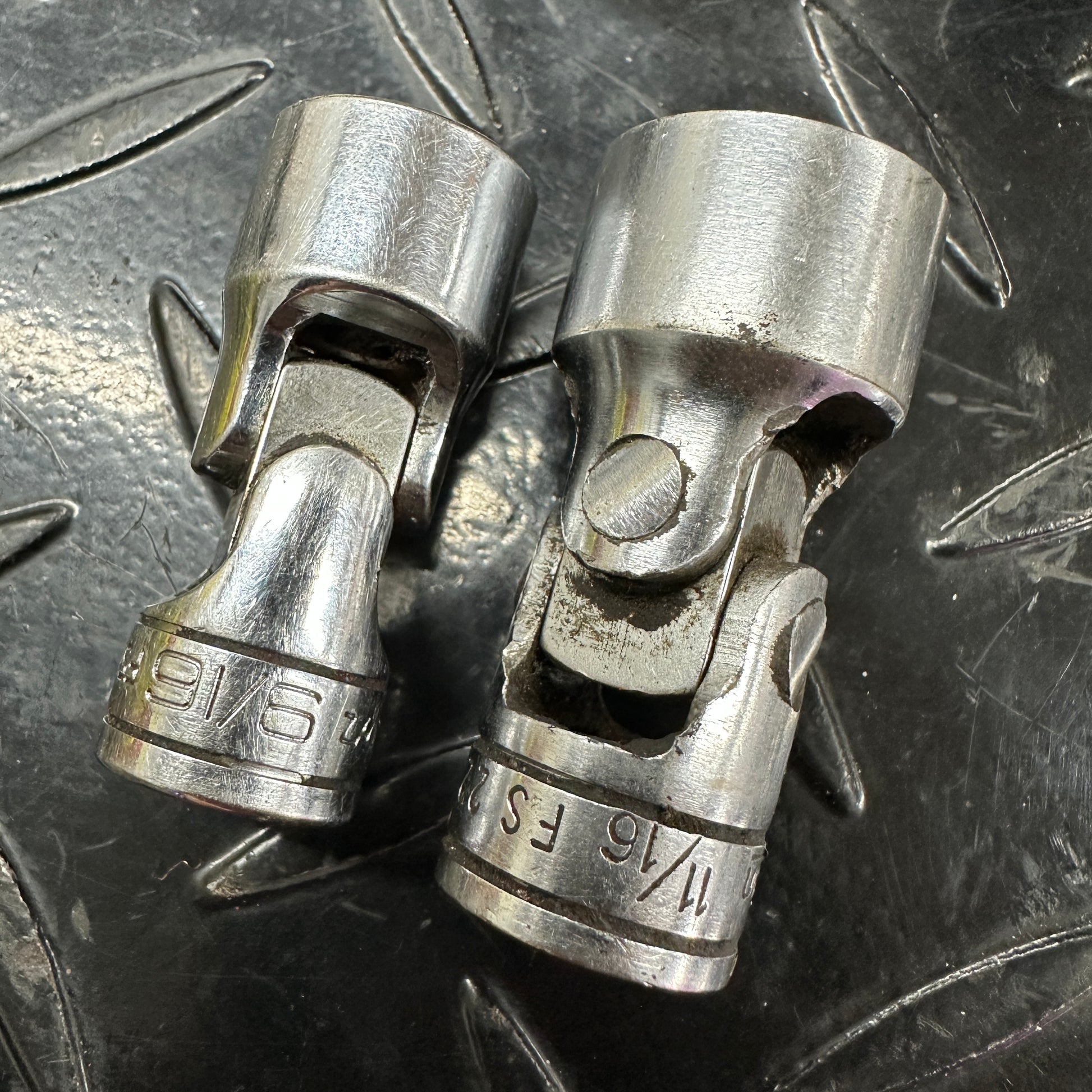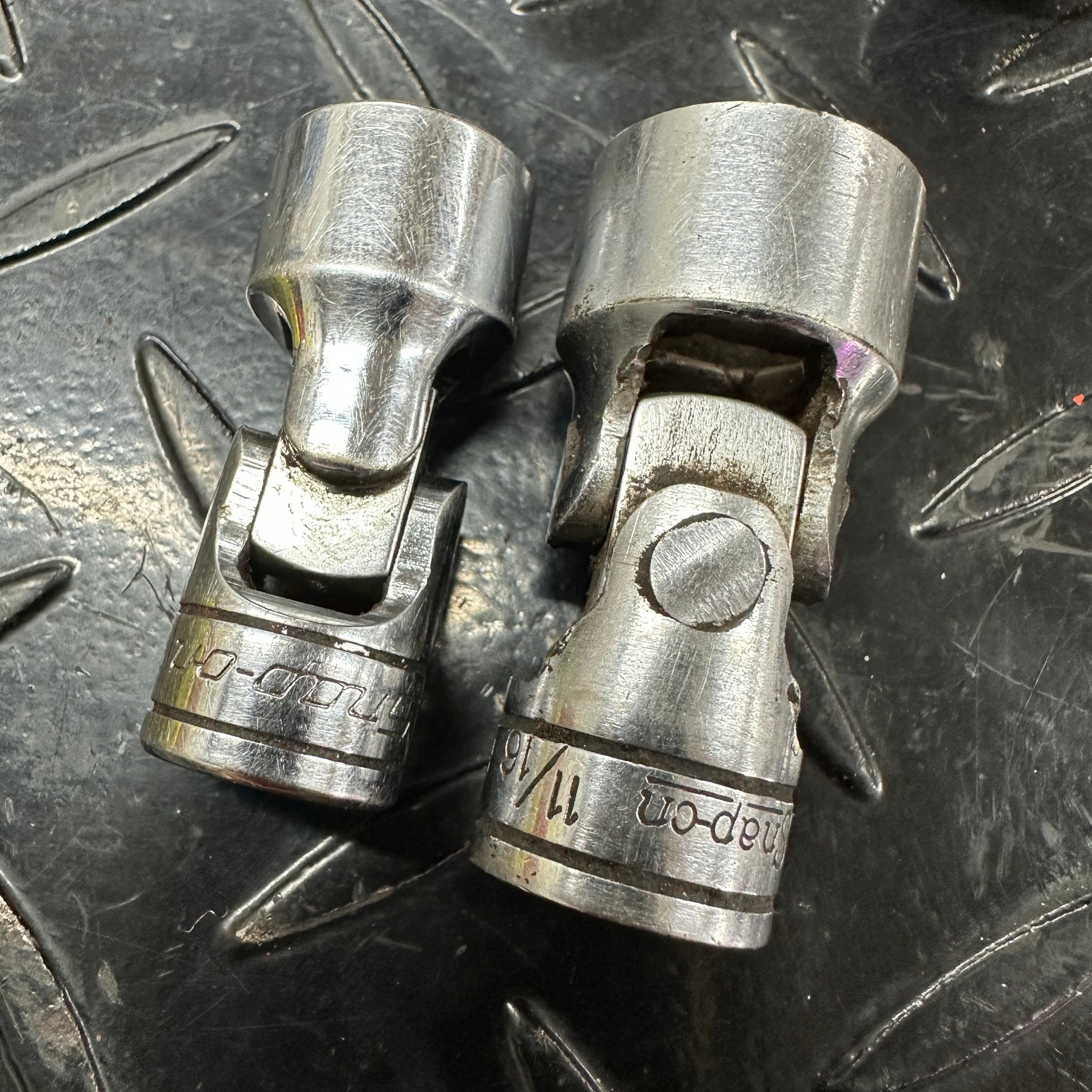 Snap-on SAE 6pt Swivel Socket Set 8pc mixed 80s 90s - 5/8", 11/16", and 3/4" have early underline logo (see photos for detail)