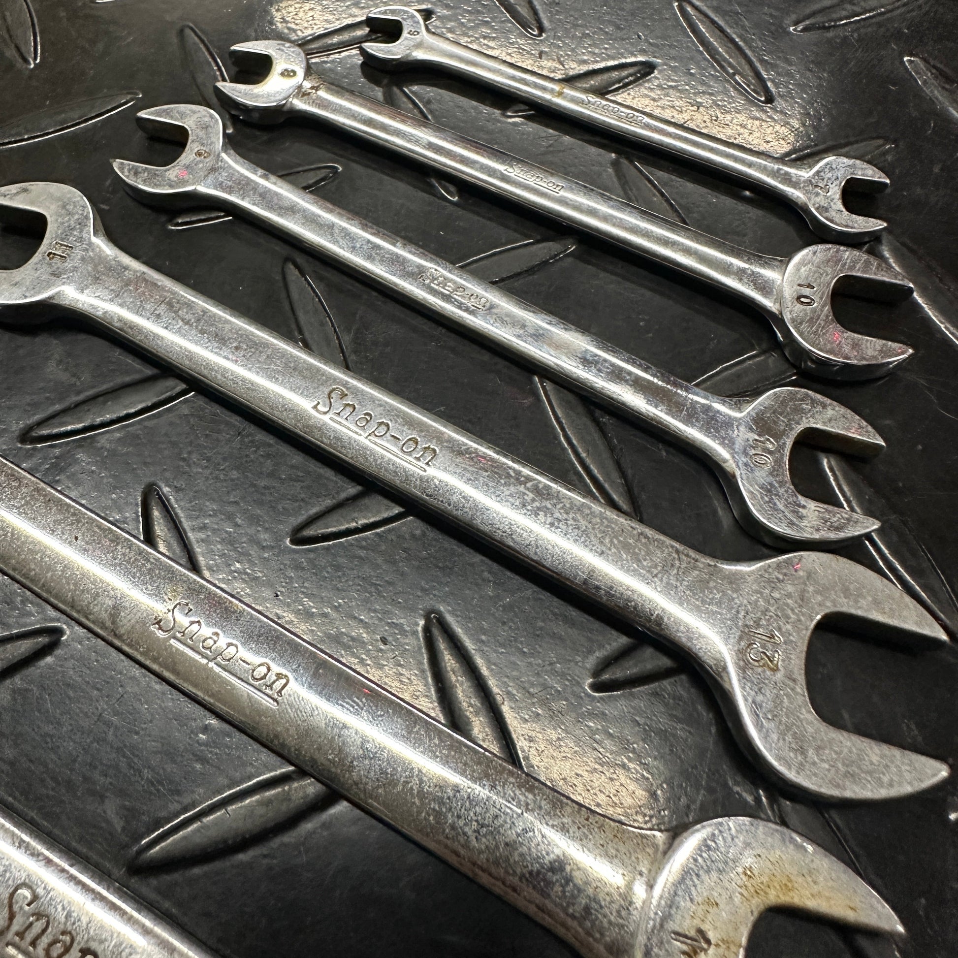 Snap-On Metric Double Open End Wrench Set 8pc mixed years 1980s. 6mm+7mm - 8mm+10mm - 9mm+10mm - 11mm+13mm - 12mm+14mm - 14mm+15mm - 16mm+18mm - 17mm+19mm
