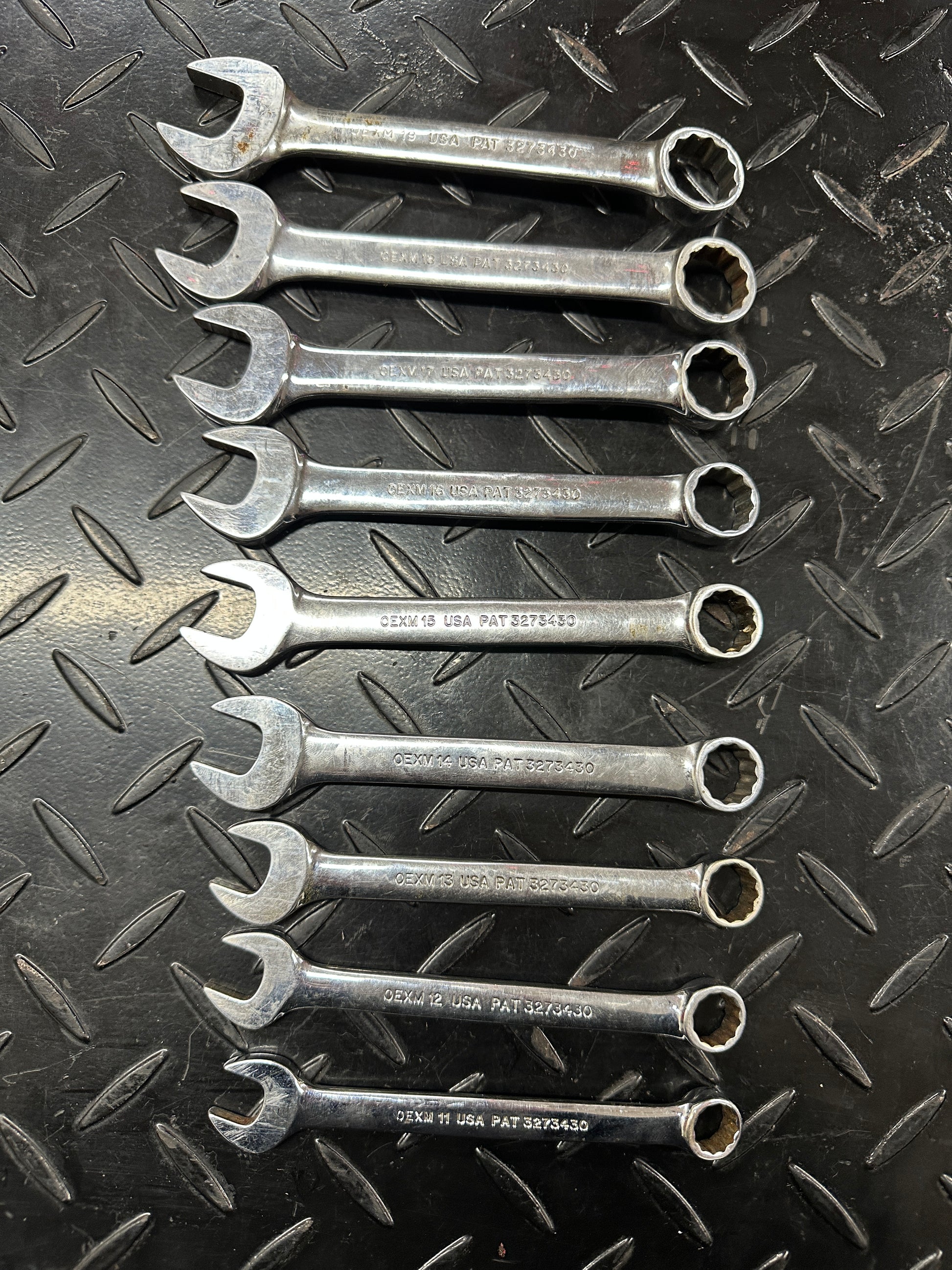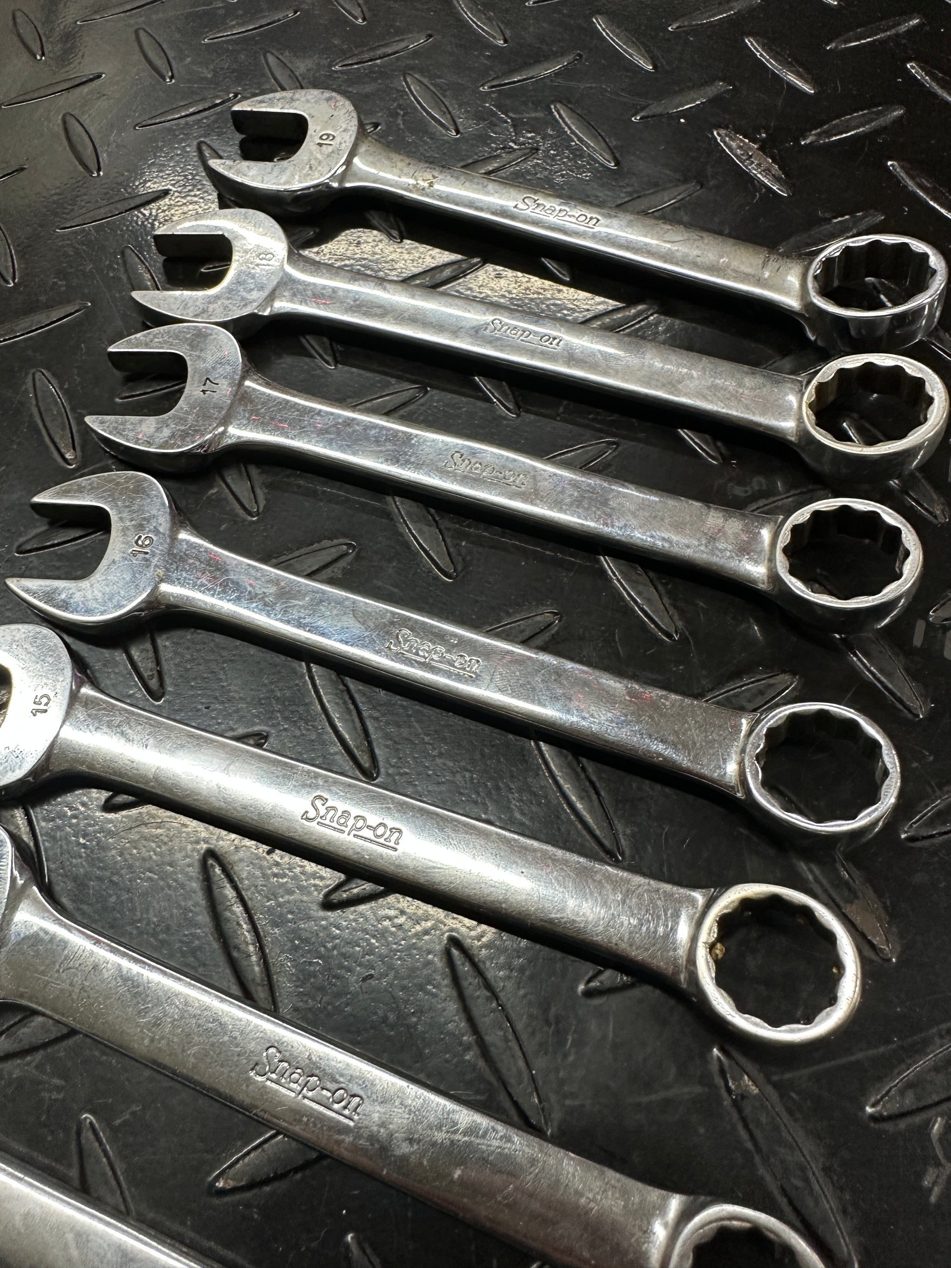 1980s Snap On Stubby Metric Combo Wrench set, mixed years 1980s underline logo 11mm - 12mm - 13mm - 14mm - 15mm - 16mm - 17mm - 18mm - 19mm