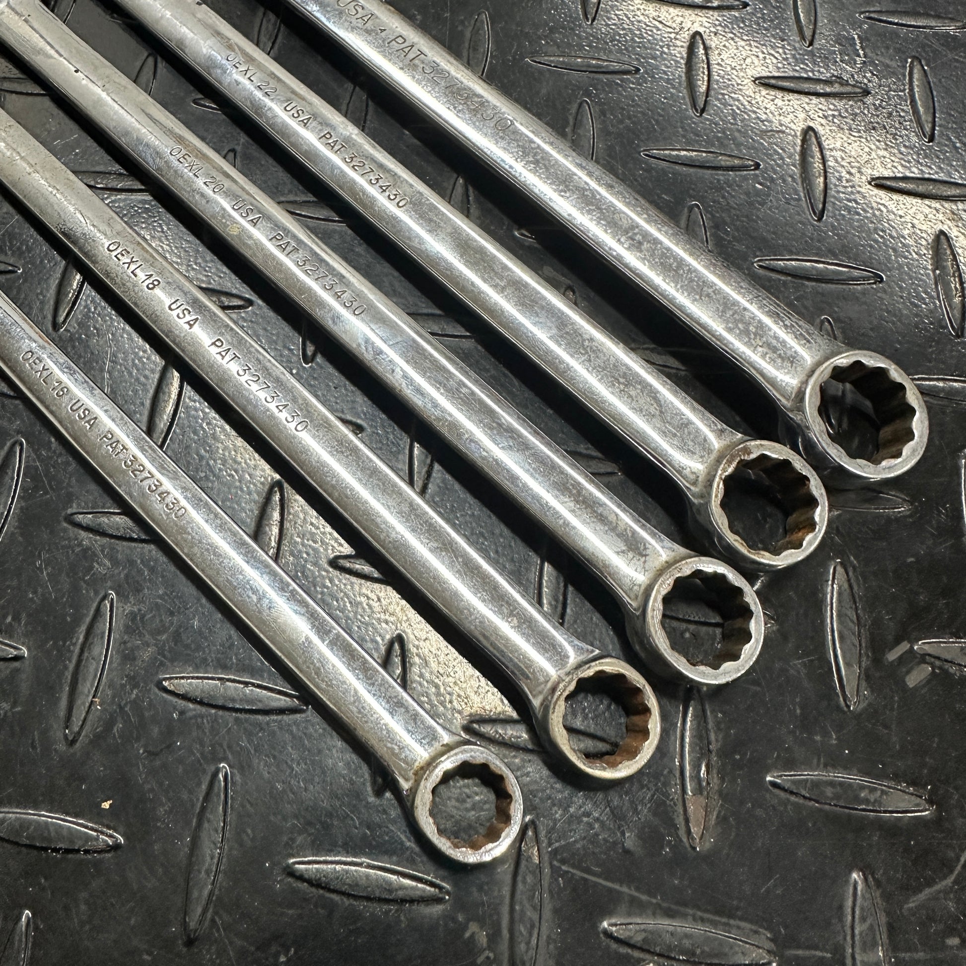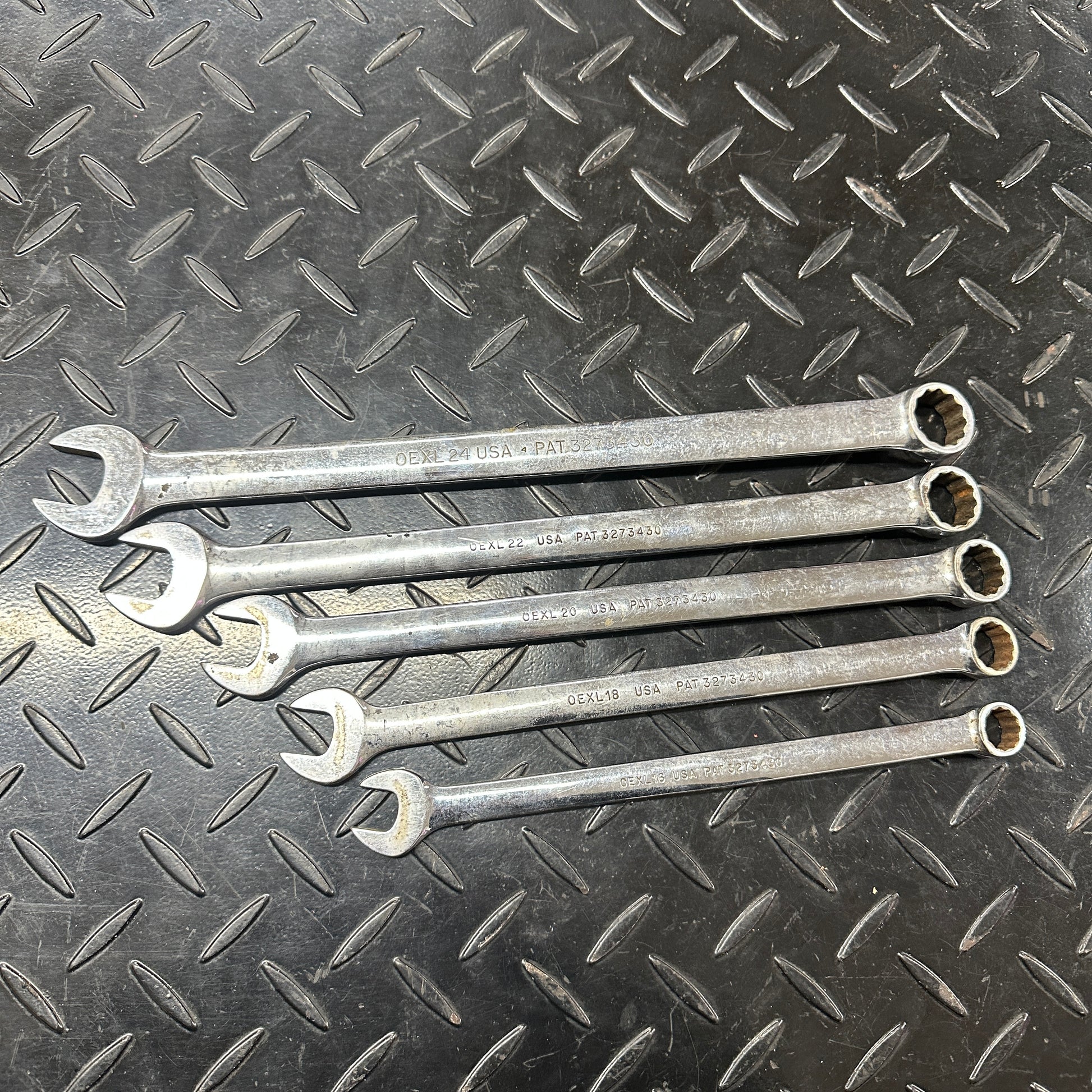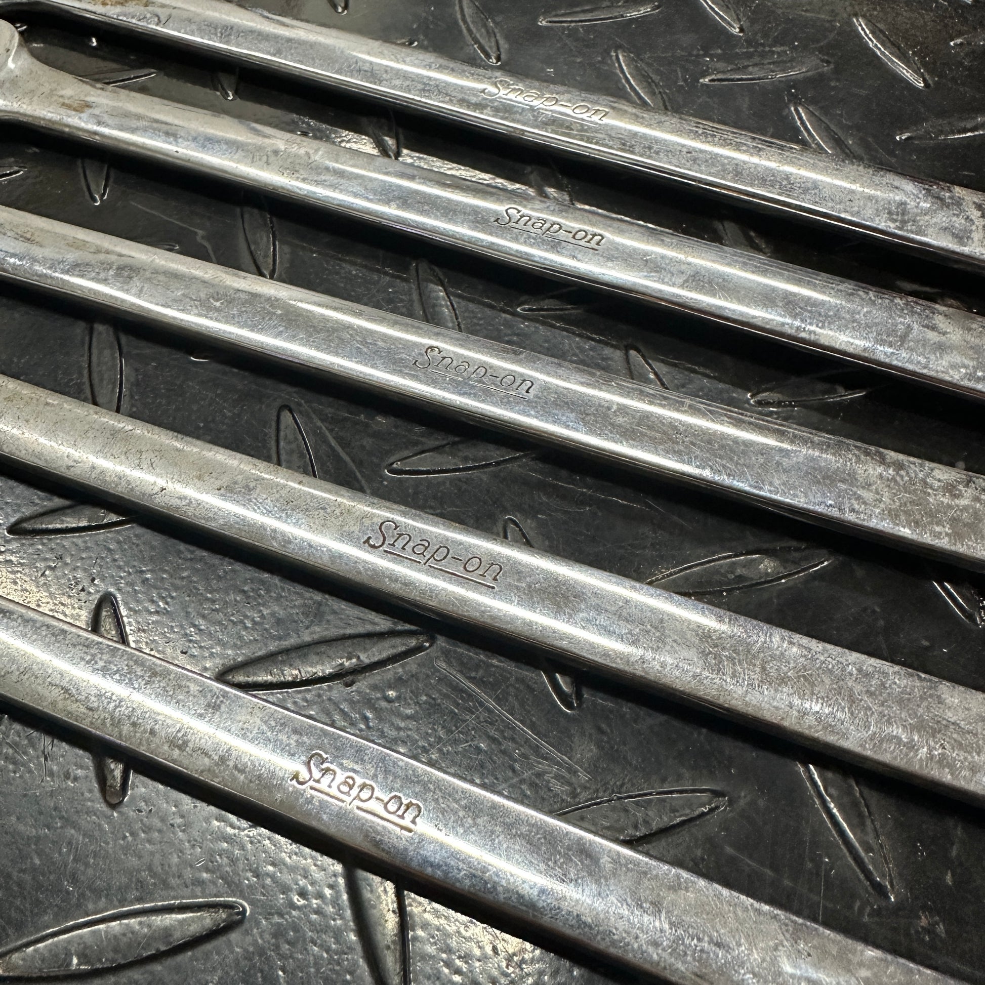 1980s Snap On Combo Long (extended length) Wrench set, mixed years 1980s. 1/2 - 9/16 - 5/8 - 11/16 - 3/4