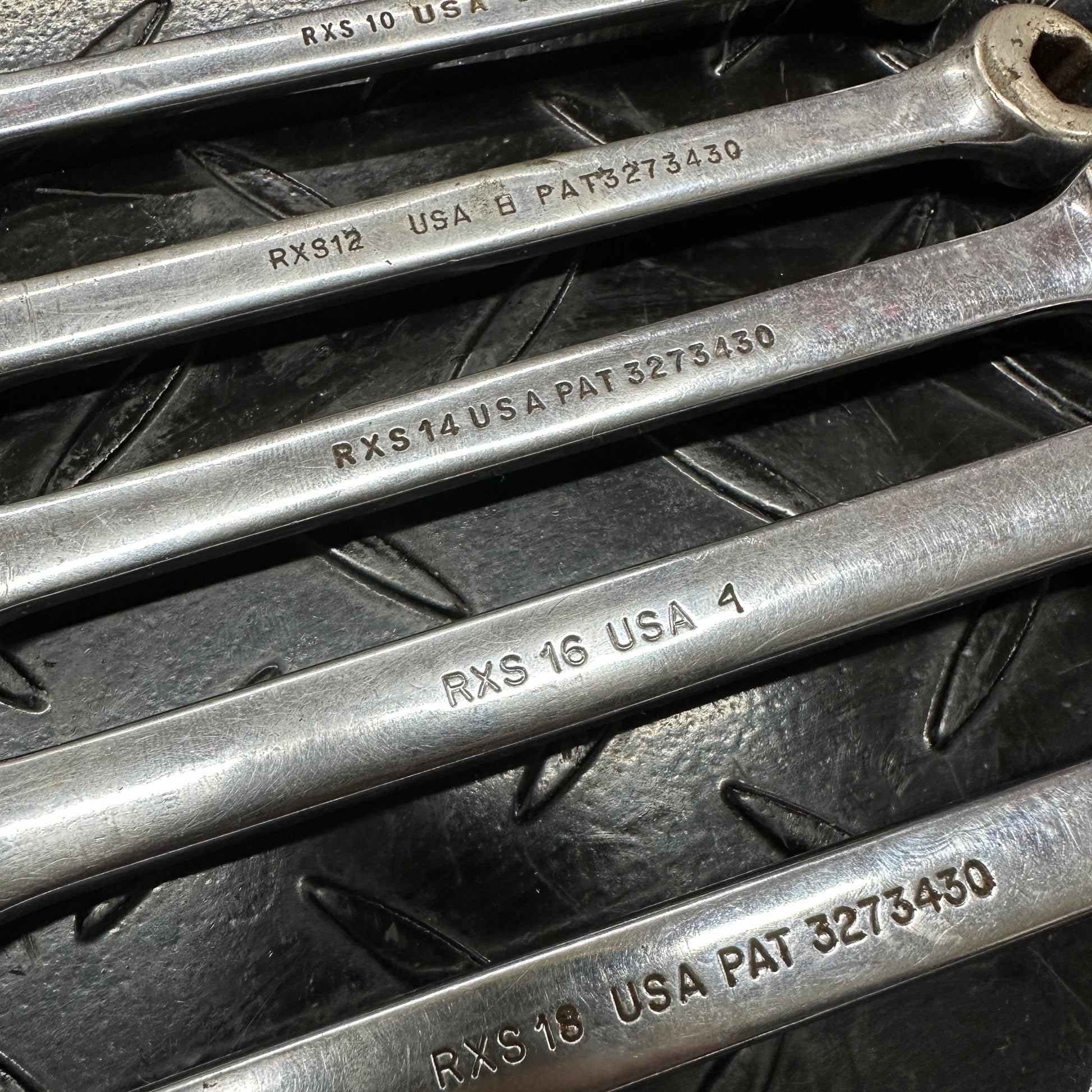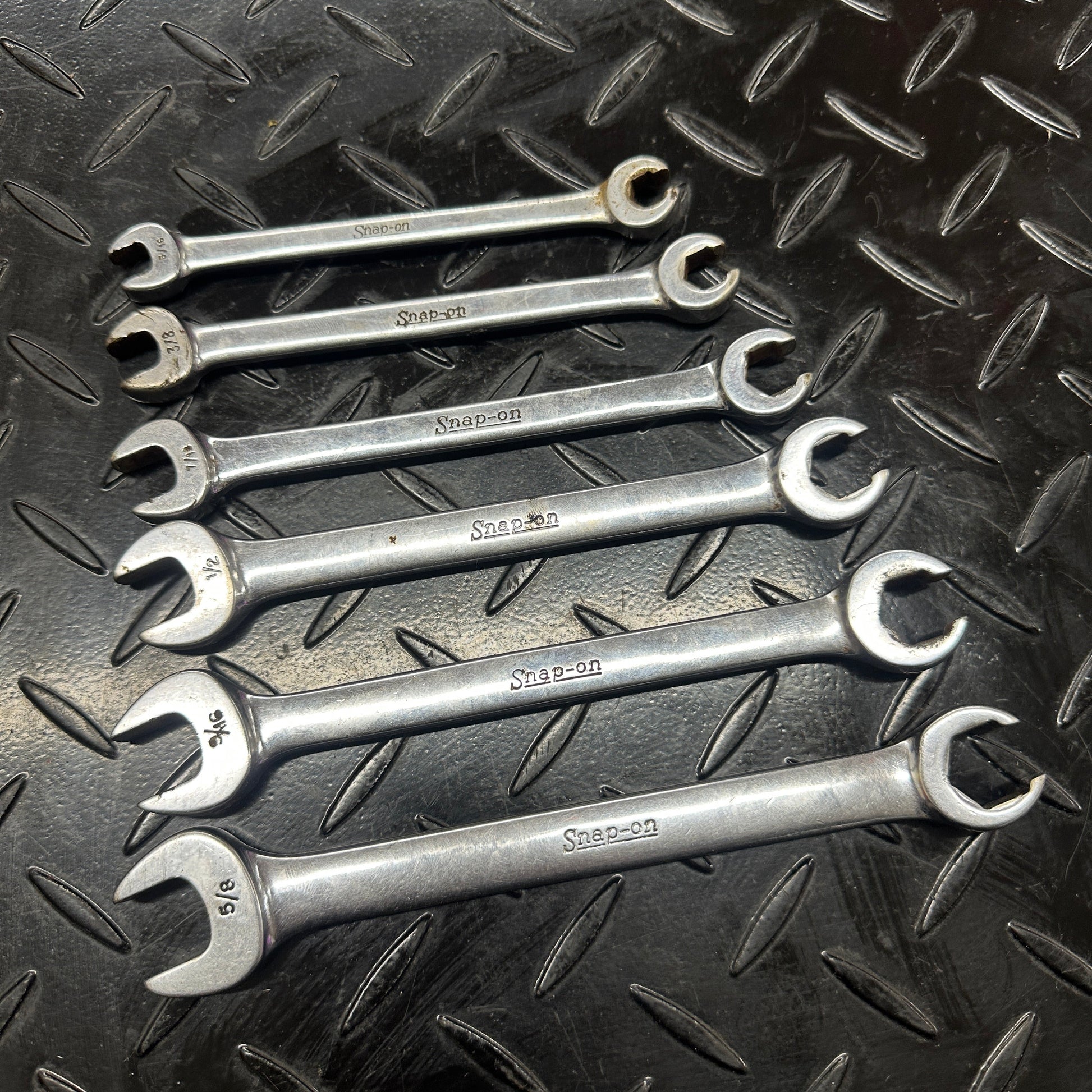 Snap On Flare Nut Combo Wrench set, mixed years 1980s. 5/16" - 3/8" - 7/16" - 1/2" - 9/16" - 5/8"